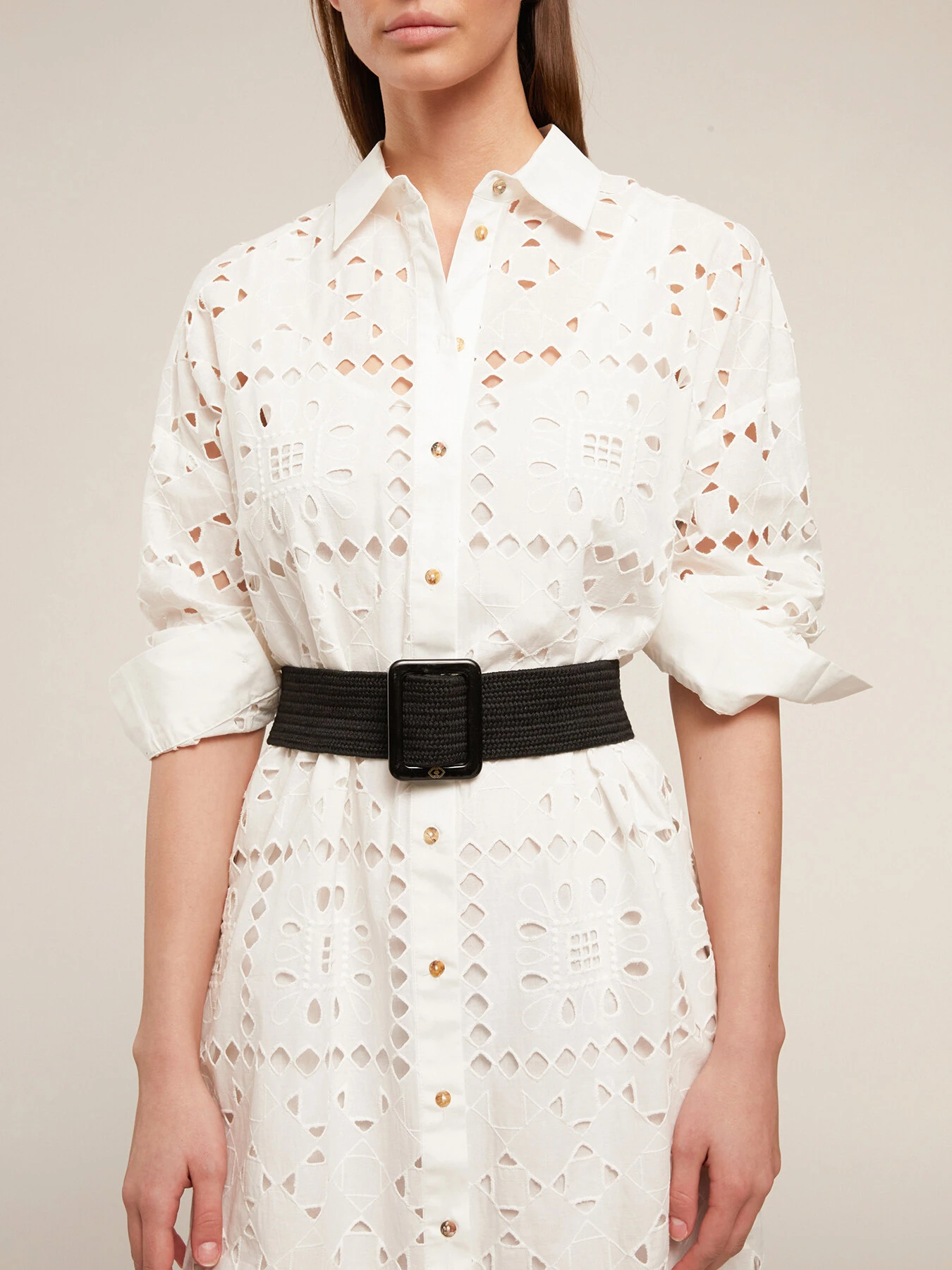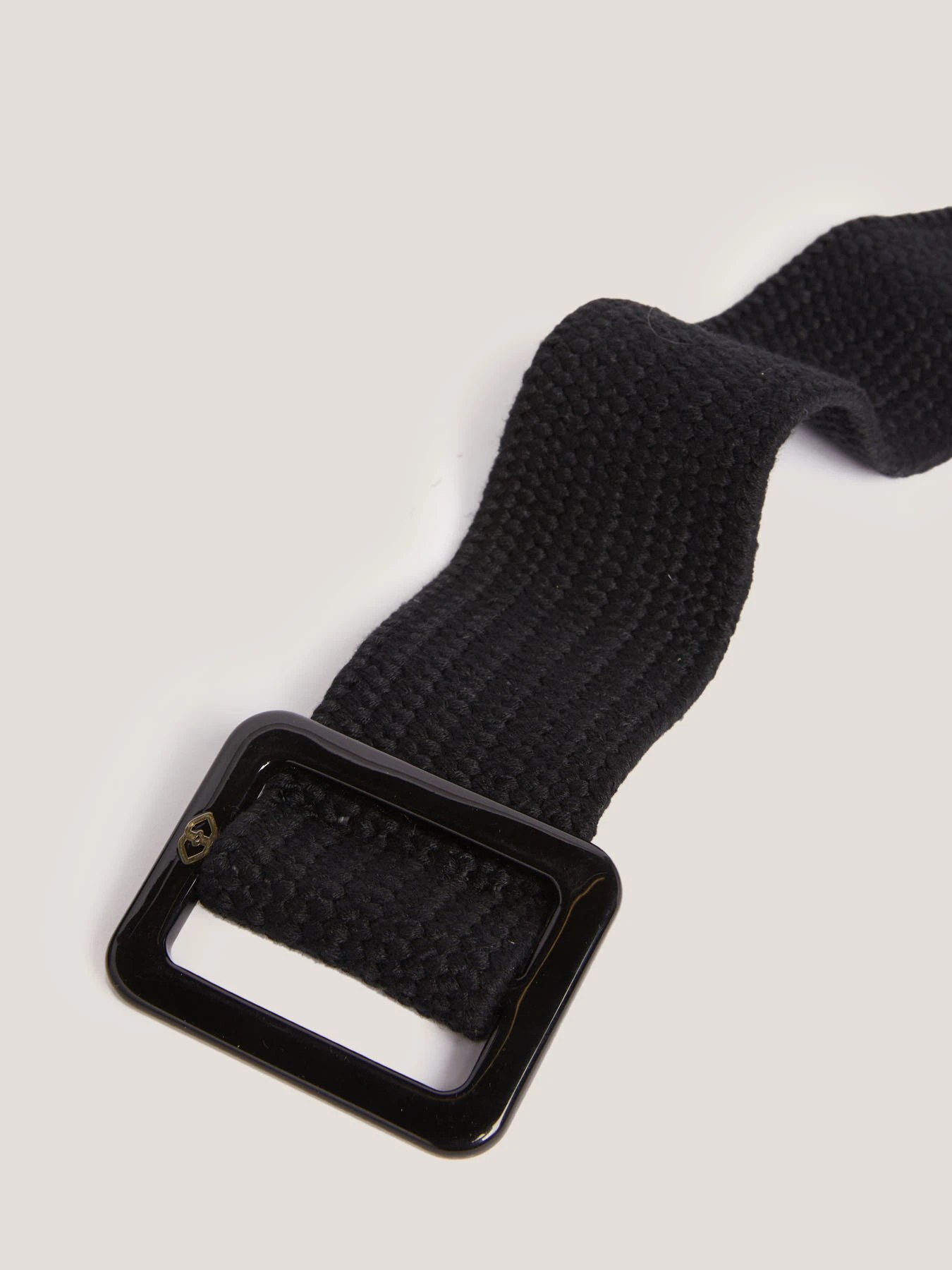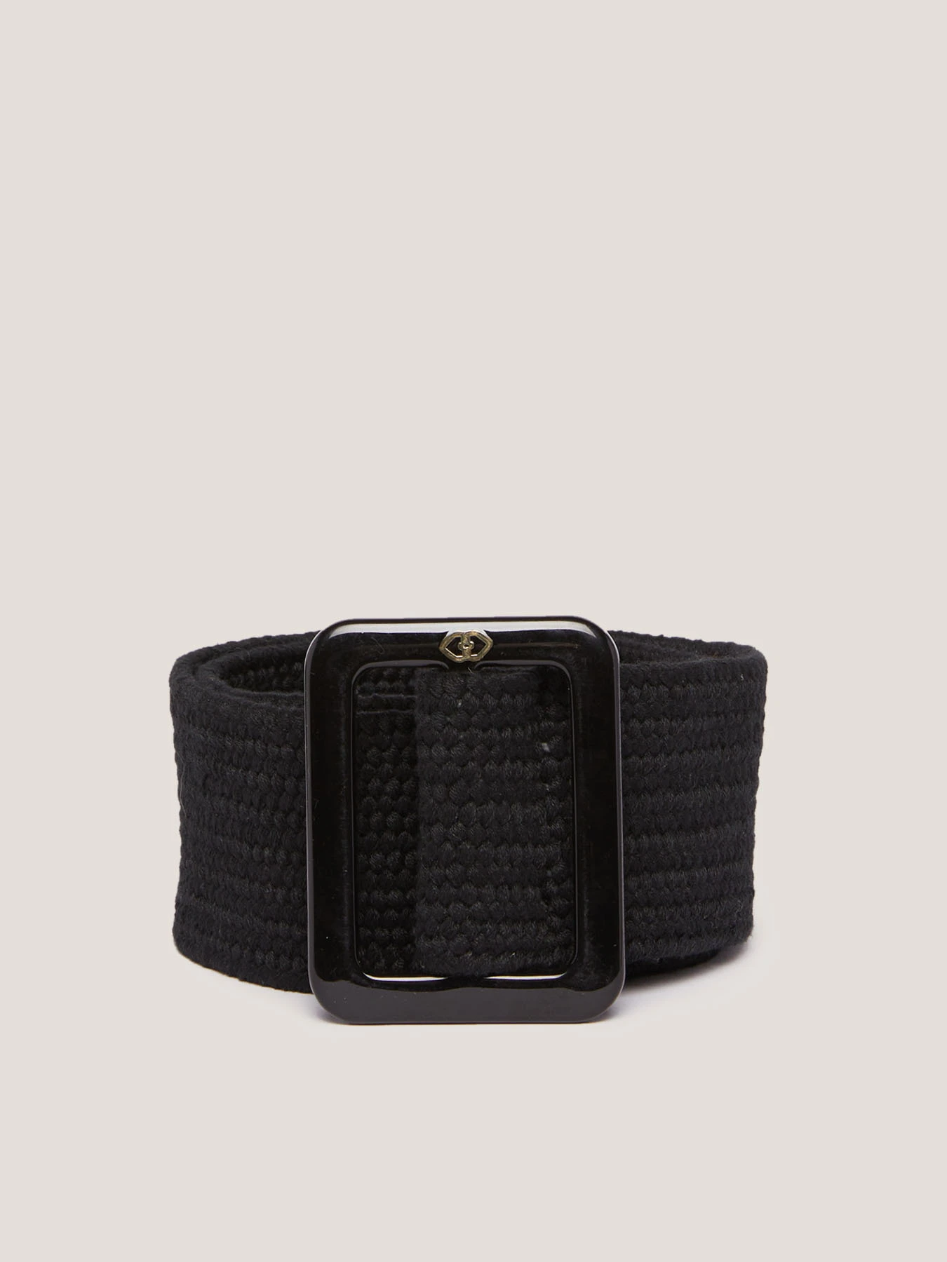Cintura elastica in rafia; tinta unita; fibbia rettangolare in resina tono su tono con placca metallica Double Love.