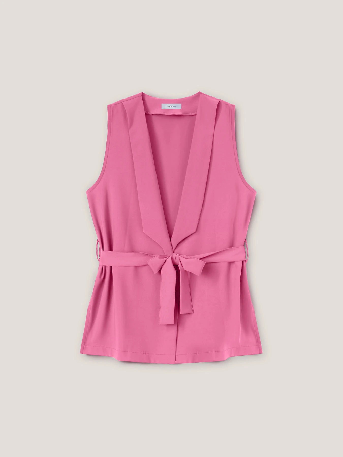 Gilet elegante lungo in cady stretch tinta unita; collo a scialle; fusciacca in vita da annodare tono su tono.
