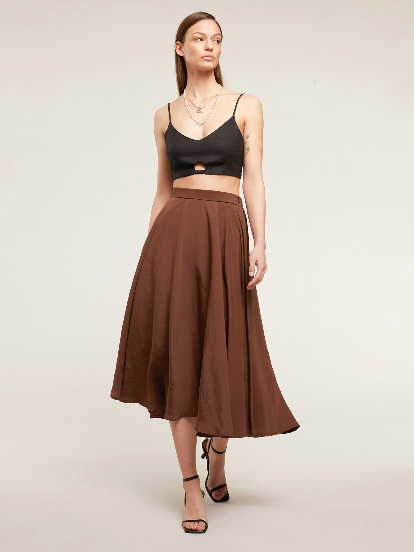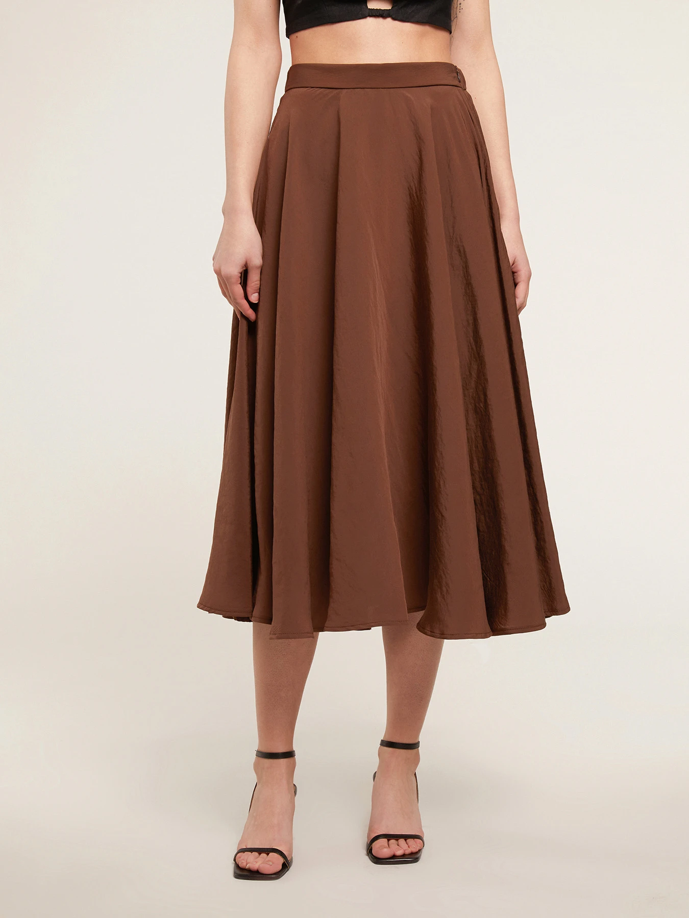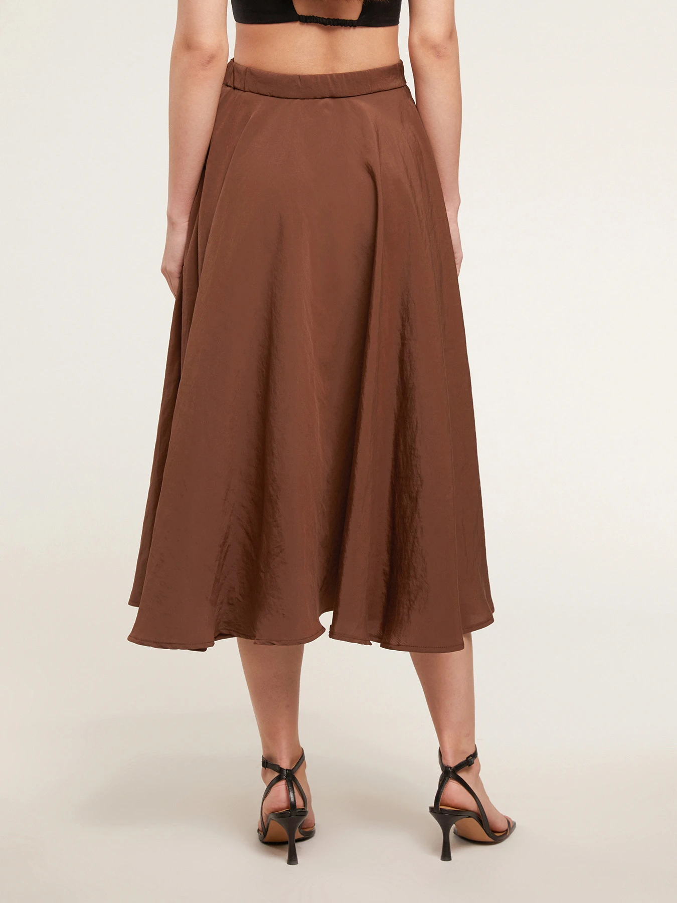 Gonna a ruota misto modal; lunghezza midi; chiusura laterale con zip invisibile.