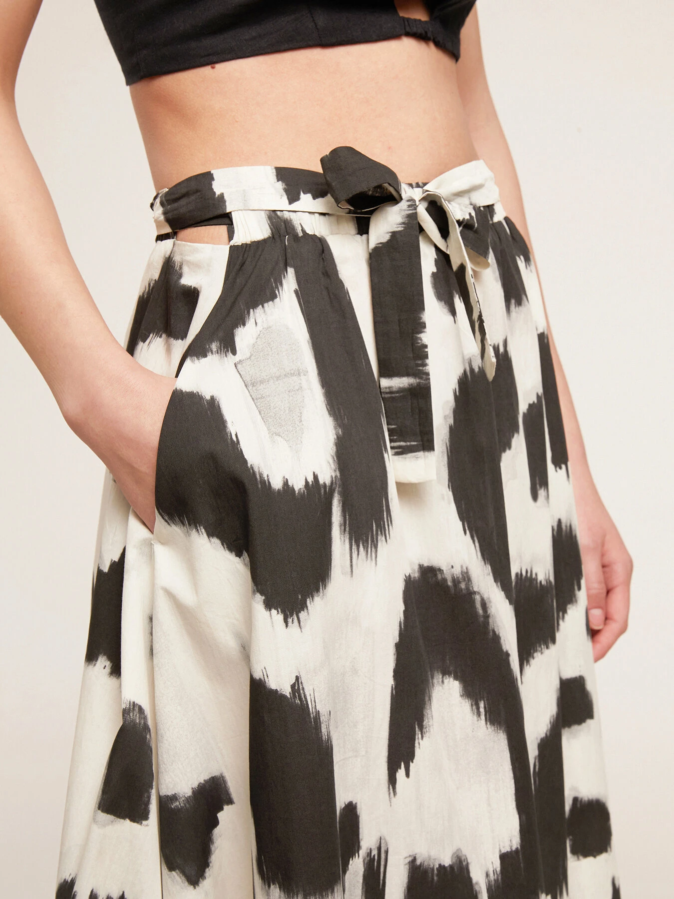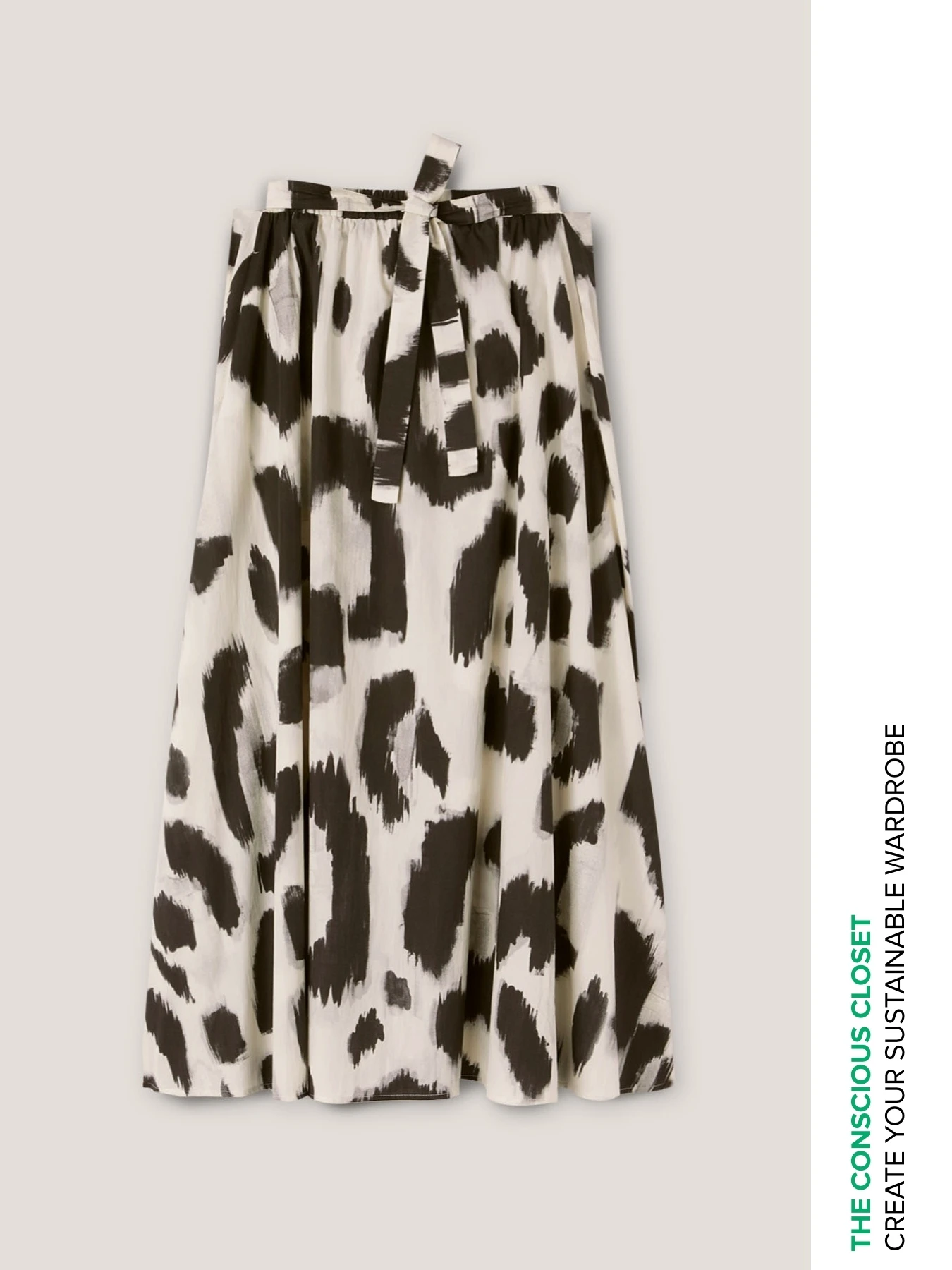 Gonna lunga in cotone stampa animalier; vita stretch con elastico interno e zip, fusciacca tono su tono; fondo ampio e linea a ruota; Scegliendo i nostri prodotti in cotone state supportando il nostro contributo alla missione di Better Cotton promuovendo una produzione più responsabile del cotone. Questo prodotto proviene da un sistema di bilancio di massa e pertanto potrebbe non contenere Better Cotton.