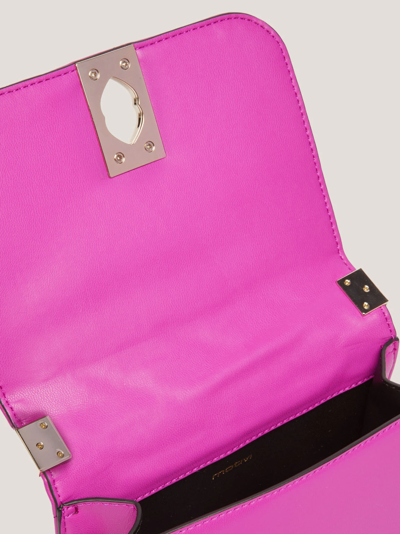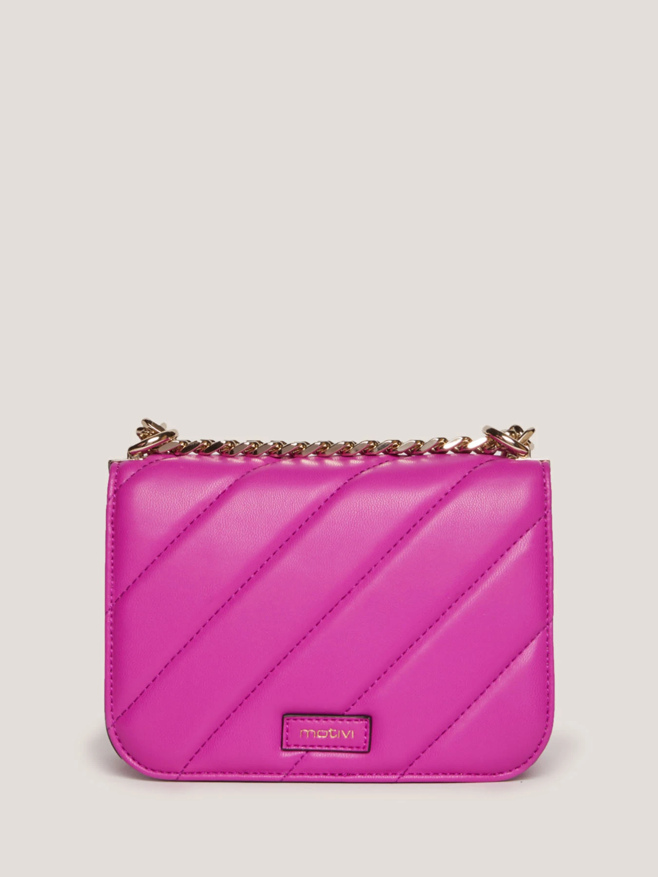 Mini City Bag in similpelle effetto quilted; tracolla regolabile in catena metal diamantata, chiusura con nottolino Double Love, tasca interna; dimensioni: altezza 14 cm, larghezza 19 cm, ampiezza 7 cm.