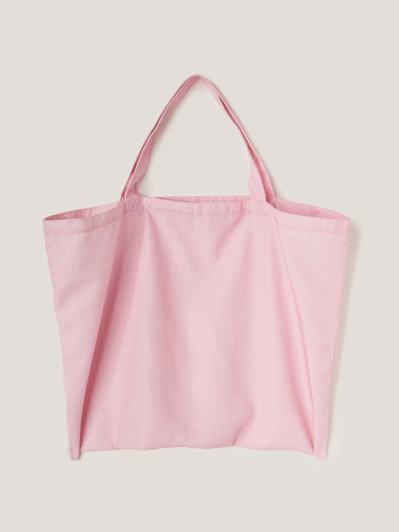 Shopper pieghevole in nylon stampa Double Love; astuccio con zip metallica; dimensioni borsa: 65×45 cm.