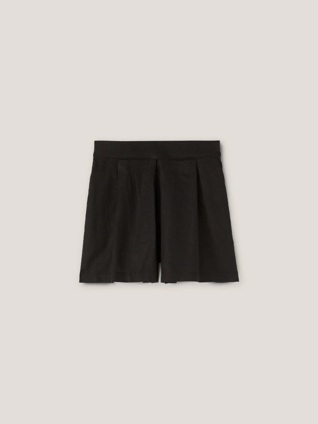 Shorts in tela di lino misto viscosa; vita stretch con elastico interno nella parte posteriore; pieghe nella parte superiore.