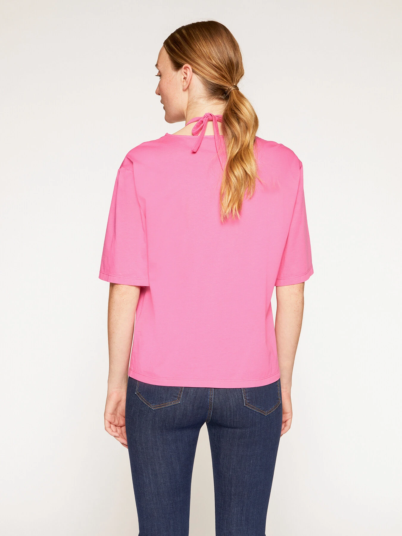 T-shirt oversize in jersey di cotone; scollo a barca, maniche corte; collana a catena tono su tono.