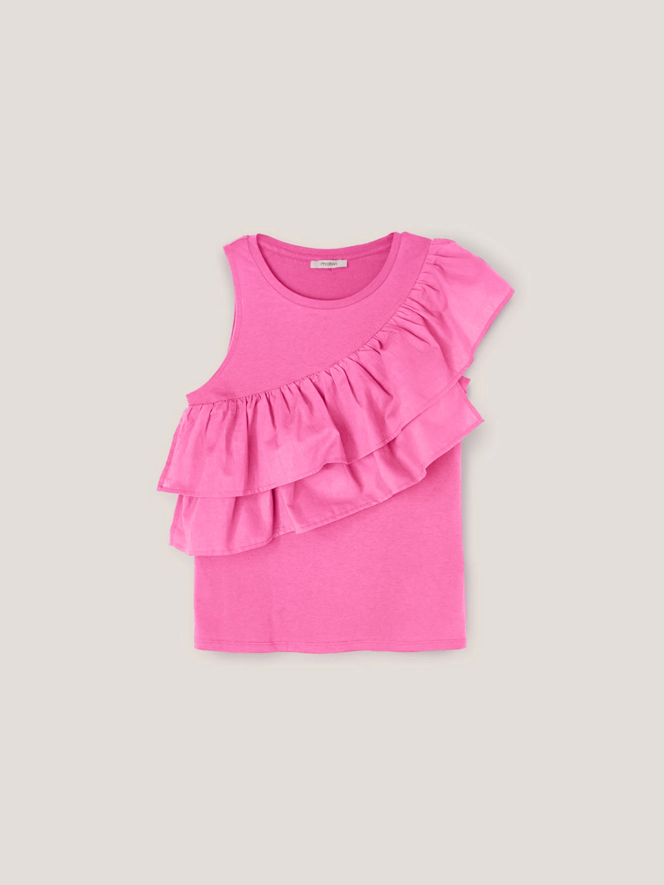 Top in jersey misto cotone tinta unita; modello con scollo tondo e spalla larga; motivo asimmetrico di rouches frontali in popeline misto cotone lyocell.; Scegliendo i nostri prodotti in cotone state supportando il nostro contributo alla missione di Better Cotton promuovendo una produzione più responsabile del cotone. Questo prodotto proviene da un sistema di bilancio di massa e pertanto potrebbe non contenere Better Cotton.