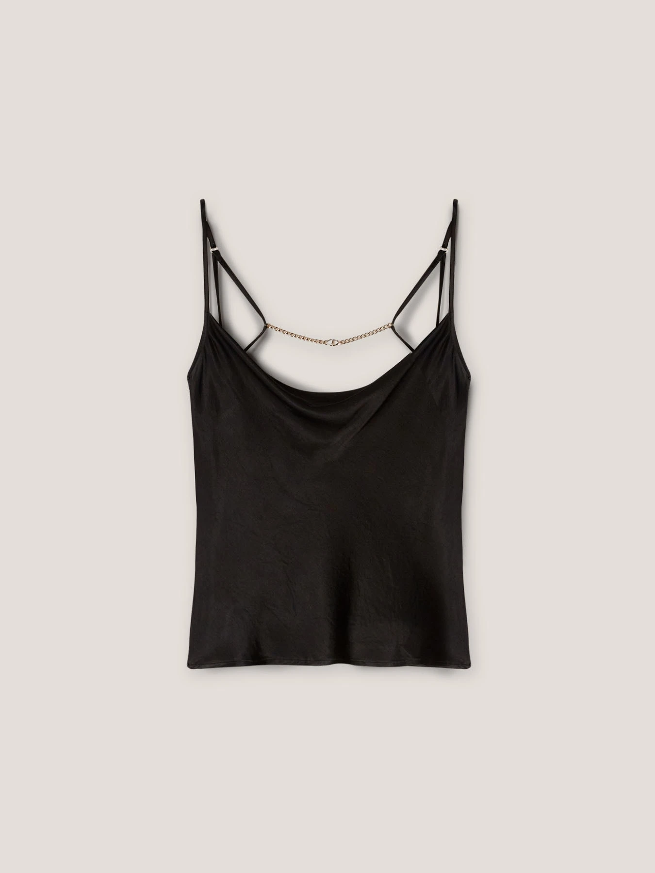 Top lingerie in raso tinta unita; scollo drappeggiato; spalline fini.