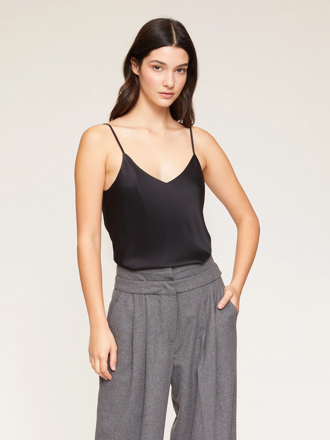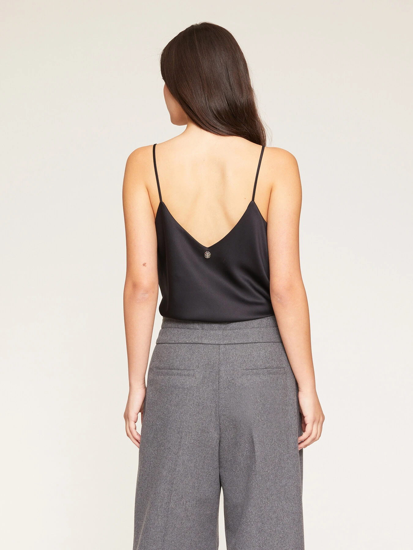 Top lingerie in fluido raso; modello con scollo a cuore e spalline fini; placchetta metallica logo Motivi cucita nel centro dietro.