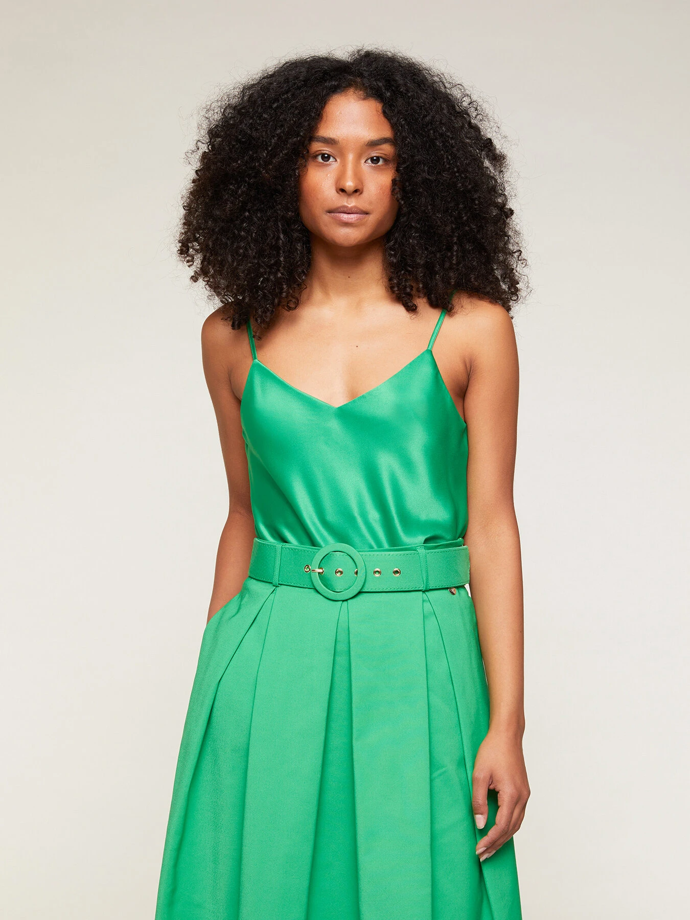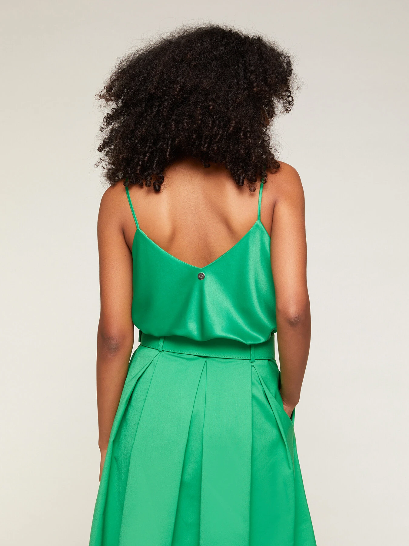 Top sottoveste in raso; modello con scollo a cuore e spalline fini; placchetta metallica con logo cucita nel centro dietro.